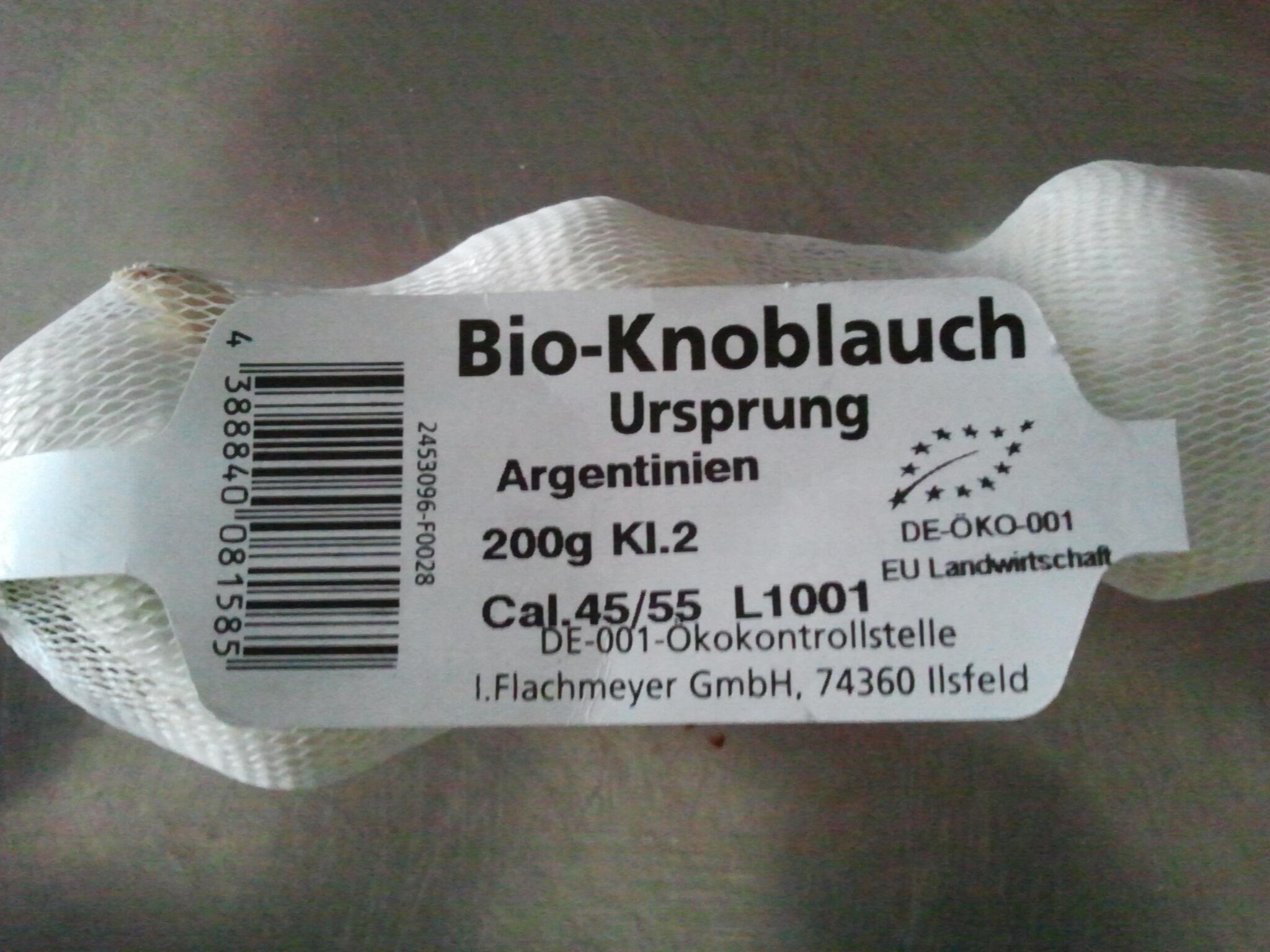 Bio-Knoblauch Ursprung Argentinien 200g Kl. 2